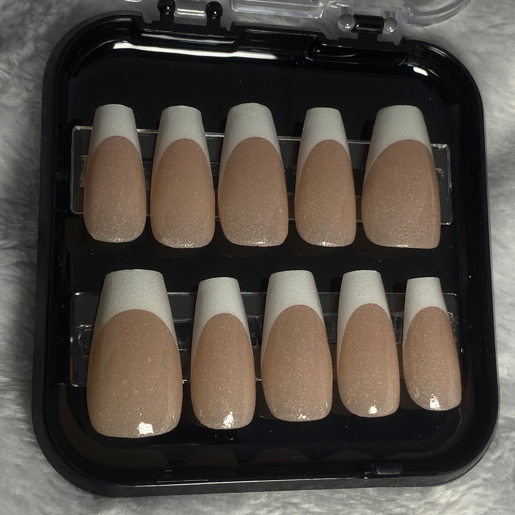 White french tip coffin shaped nails in a large size
