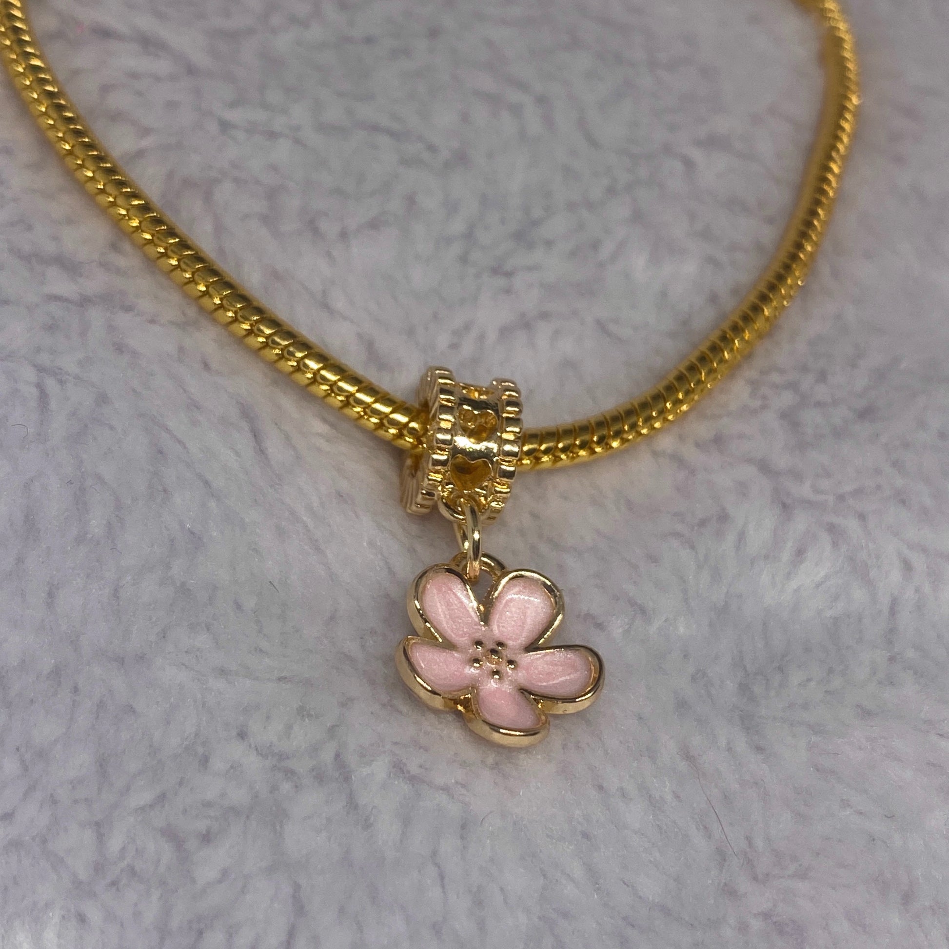 Gold and pink flower charm