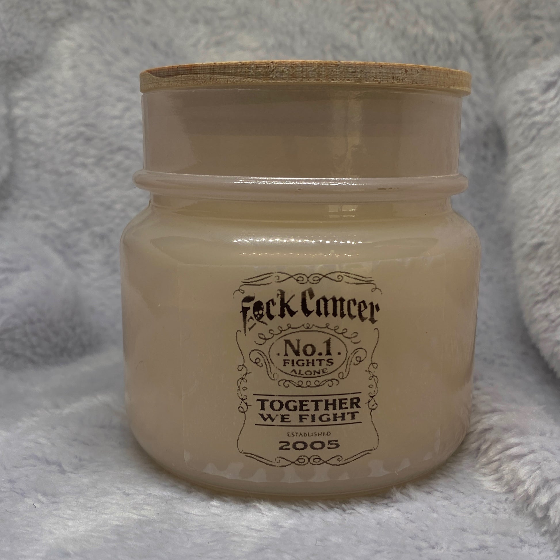 Jack Daniels inspired 'Vanilla' scented cancer awareness candle with a wooden lid
