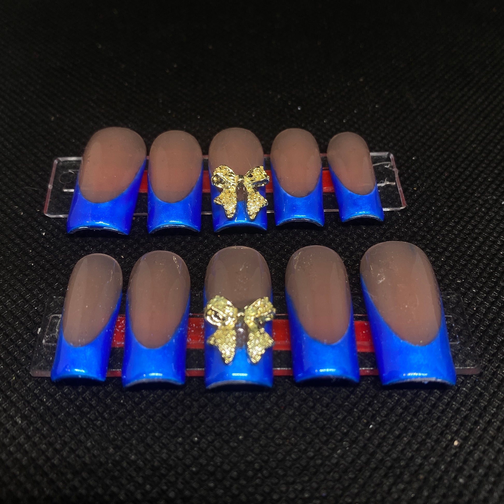 Coraline themed French tip square shaped nails- Can be made in ALL sizes