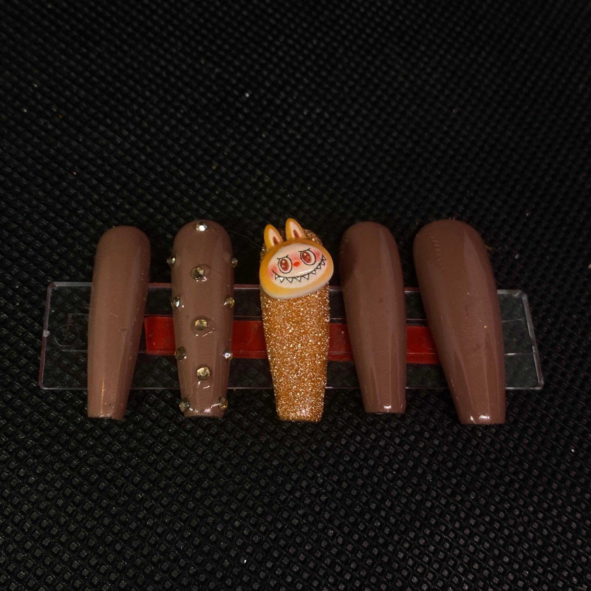 Orange Labubu styled coffin shaped nails- Available in all sizes