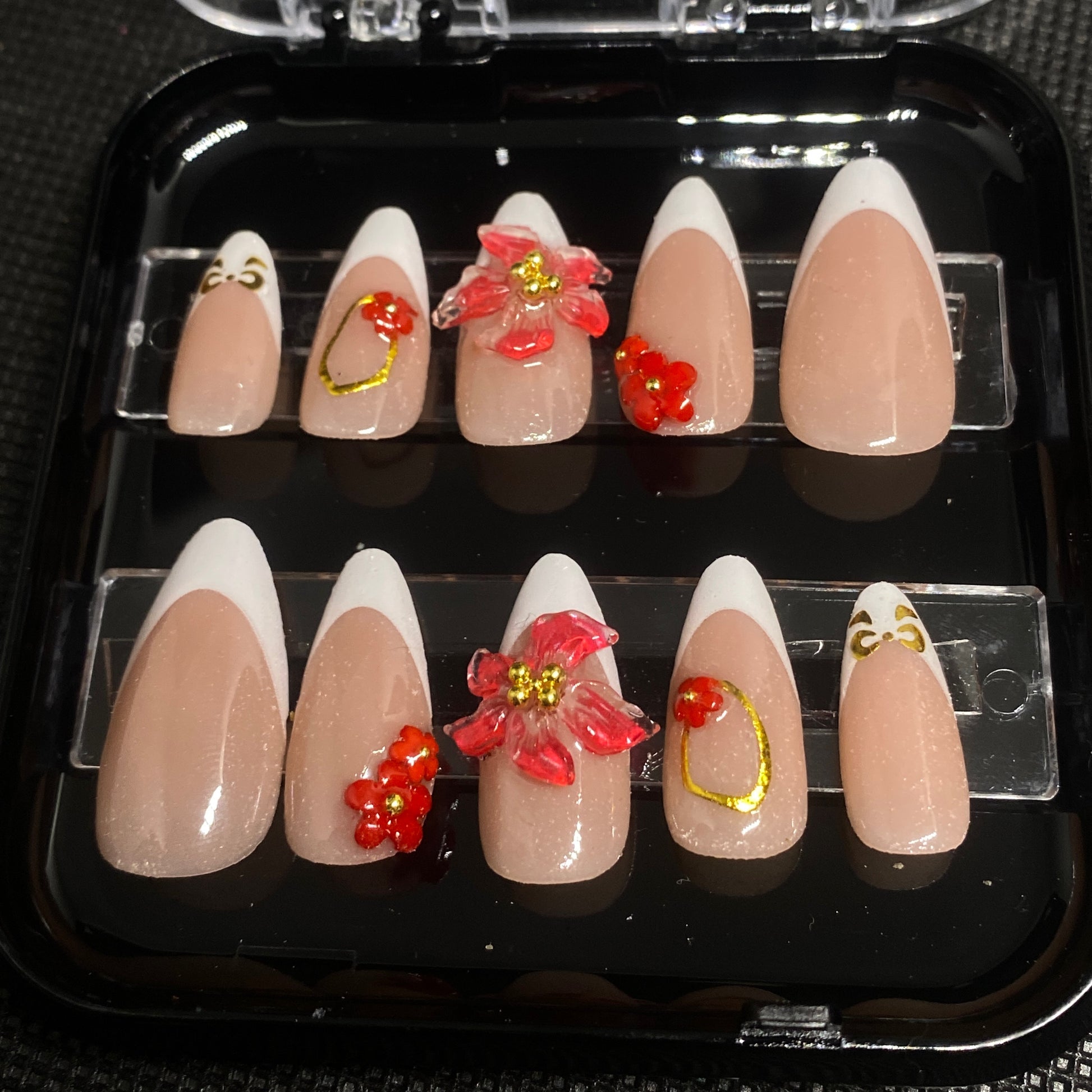 French tip almond shaped nails - Medium sized