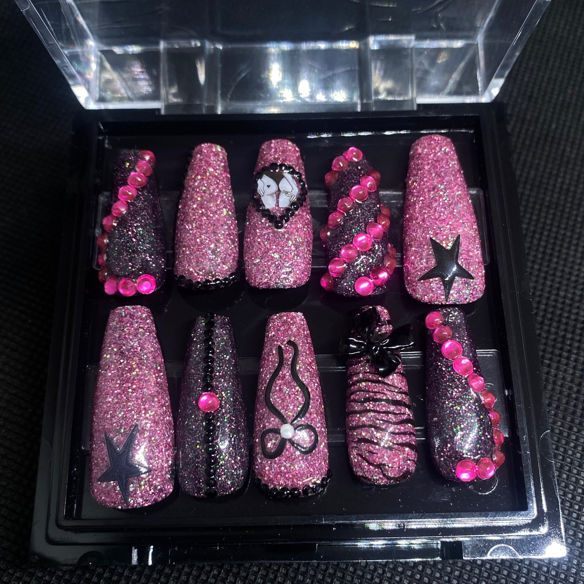 gorgeous purple and pink glitter coffin shaped set- medium size
